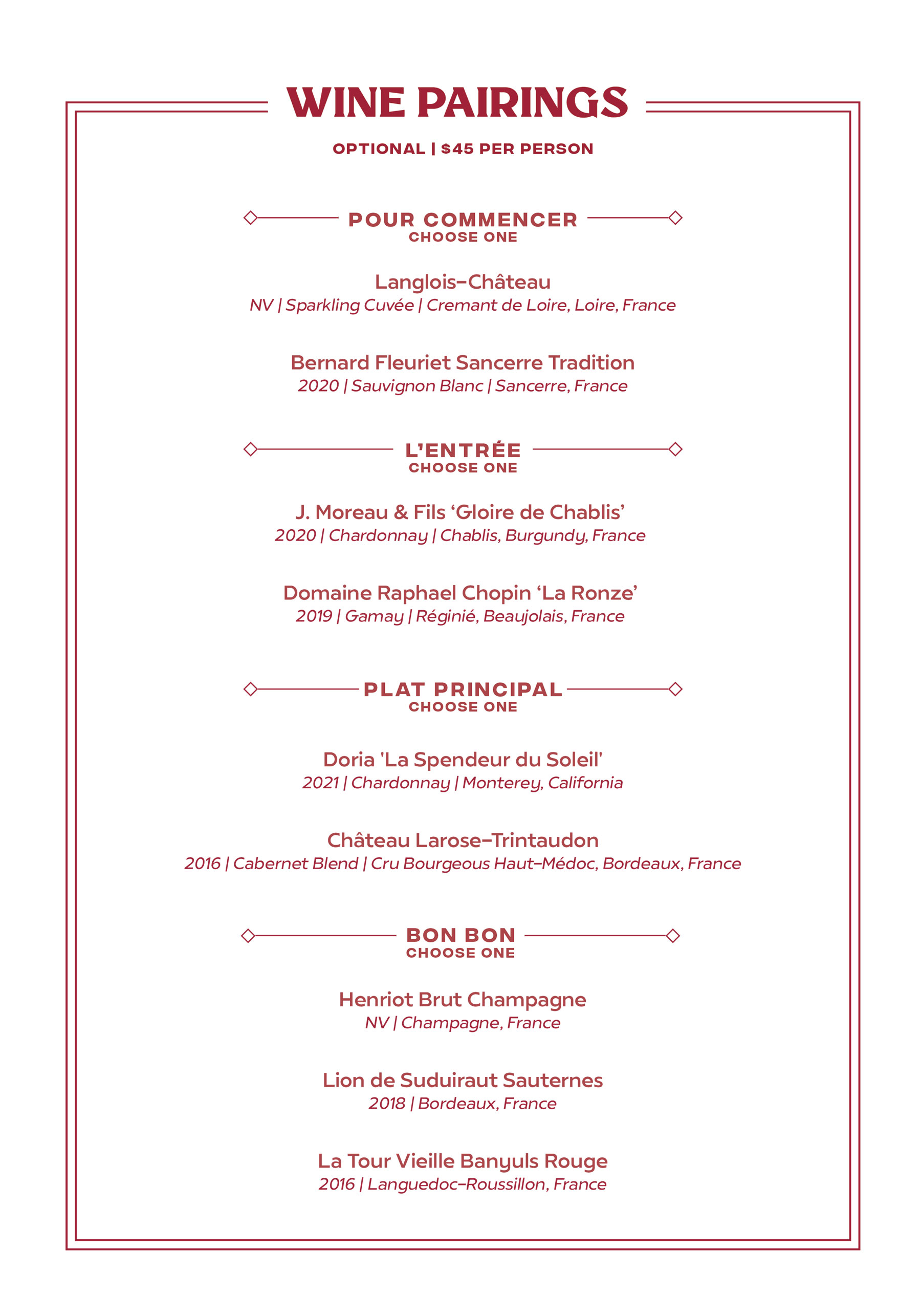 Pomeroy is a bistro inspired by the great cafes of France. Located in the heart of downtown Winnetka, Pomeroy offers warm service and approachable cuisine in a classic yet comfortable setting. The large dining room, bar, sidewalk cafe, and garden courtyard provide the perfect backdrop for any night of the week.